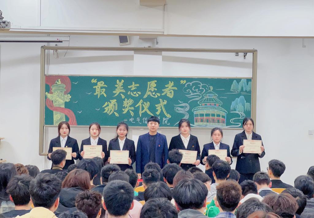 会议最后,与会老师为受到表彰的志愿者进行颁奖,并希望受到表彰的同学们能够再接再厉,充分发挥模范带头作用,同时,号召青年学生要以最美志愿者为榜样,为进一步推动学院发展和建设贡献自己的青春力量。