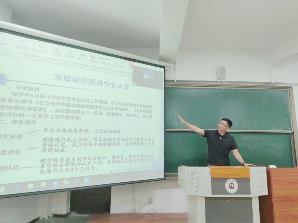讲座上,辅导员孙淳浩详细解读了国家和学校的资助政策,重点从“奖”、“助”、“贷”、“补”四个部分向2023级新同学们介绍了国家奖学金、国家励志奖学金、国家助学金、国家助学贷款、参军入伍学费补偿、临时困难补助、学校奖学金、勤工助学等多项资助政策以及申请要求、办理和评审流程等内容。