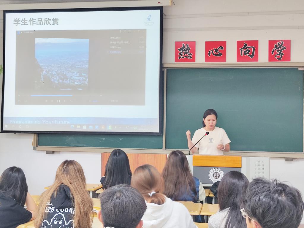 会上,李倩主任首先从数字媒体技术专业知识和教学内容两方面向新同学们进行了详细的介绍与说明,并解答了新同学们所提出的问题和疑惑,同时,李倩主任针对数字媒体技术专业进行了行业介绍和前景分析,让同学们了解了自己所学专业的就业方向等。此外,李倩主任向同学们展示了学长学姐们“武松打虎”、“清明上河图”、“女神系列”等优秀作品。