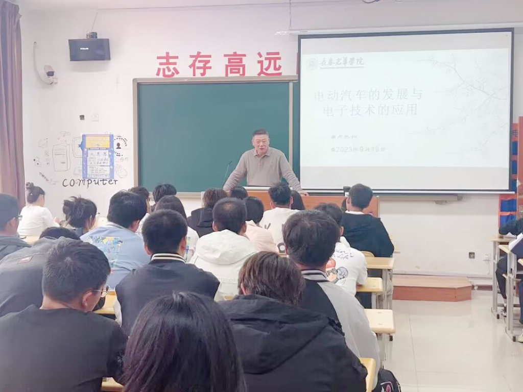 报告会最后,卢秀和主任重点结合“汽车电子”专业方向,对电动汽车的发展趋势、电子技术应用的内涵外延等做了一个引导式的讲解和说明,并以车载动力驱动控制系统为例,具体展开说明了电控系统的构成、相关专业知识的支撑、电子技术的应用等内容,对同学们深入了解专业内涵、认知社会需求、体味高新技术等起到了一个抛砖引玉的作用。