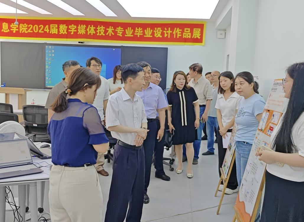 2024年6月27日,taptap点点2024届数字媒体技术毕设作品展在第二教学楼三楼举行,此次展览涵盖了web前端、人机交互、三维动画,以及MG动画四个方面的优秀作品。每一件作品都是学生们在专业学习中智慧与创造力的结晶,充分展示了他们扎实的技术功底和创新思维。董事长康启鹏、校长李晓光、副校长栾学钢、副校长陈铁、副校长张勇、教务处处长张作岭、艺术设计学院院长徐景福等领导应邀莅临数字媒体技术毕设作品展现场,与师生们共同领略数字媒体技术的魅力。