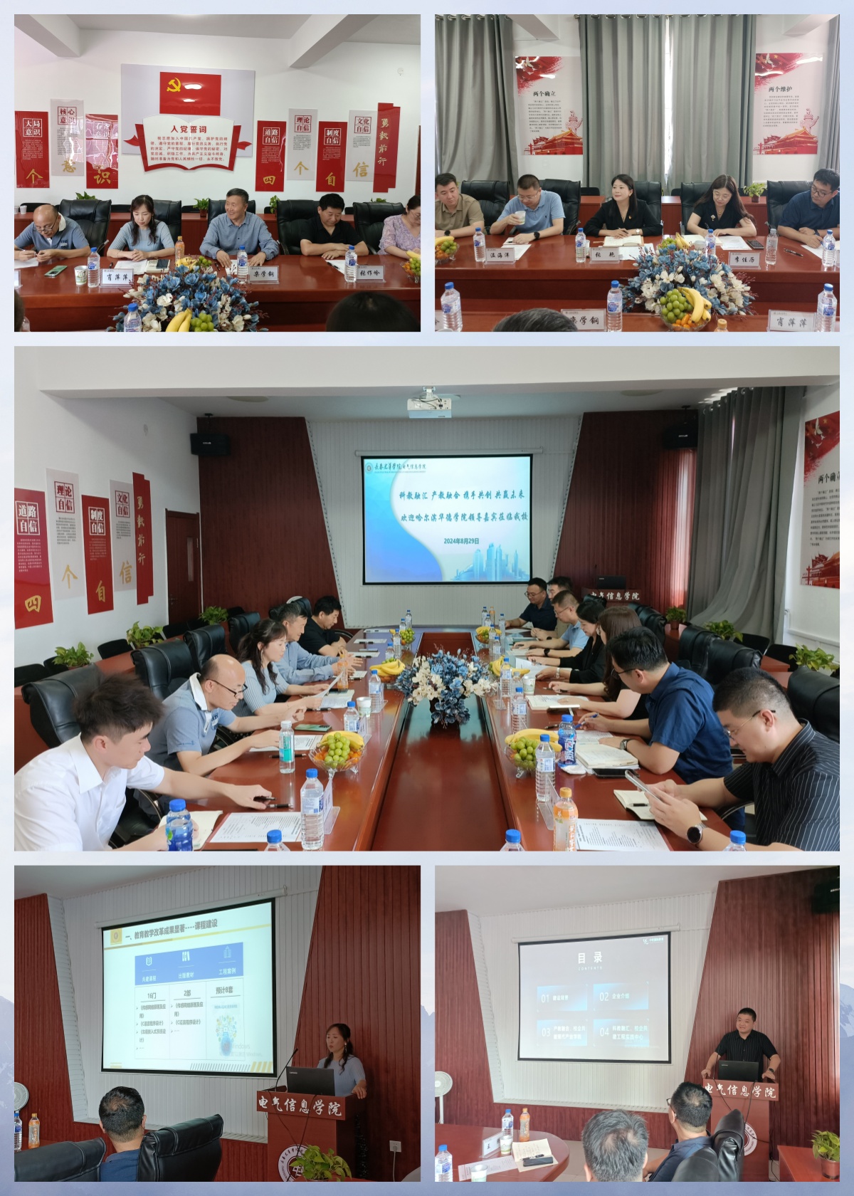 工程技术实验教学中心主任于大海带领校企各位领导参观了工程技术实验教学中心,重点介绍了校企合作专业实验室和taptap点点工科专业学科竞赛获奖情况,兄弟院校对taptap点点的科技创新作品给予了高度的评价。接下来,校企三方进行了汇报和交流活动。