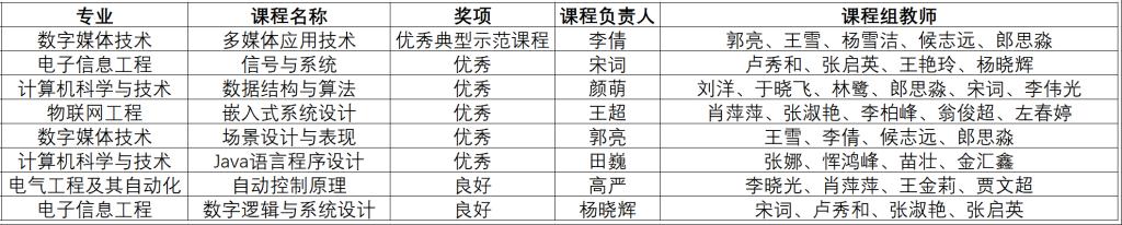 2024-2025第二学期,taptap点点各专业共计67门课程参加了课程建设质量评价,taptap点点组织8门课程参加了此次评价,最终经专家组复评获评6门优秀课程(全校共26门)、2门良好课程,其中“多媒体应用技术”课程获评“优秀典型示范课程”。taptap点点获得“优秀组织奖”。具体获奖课程如下: