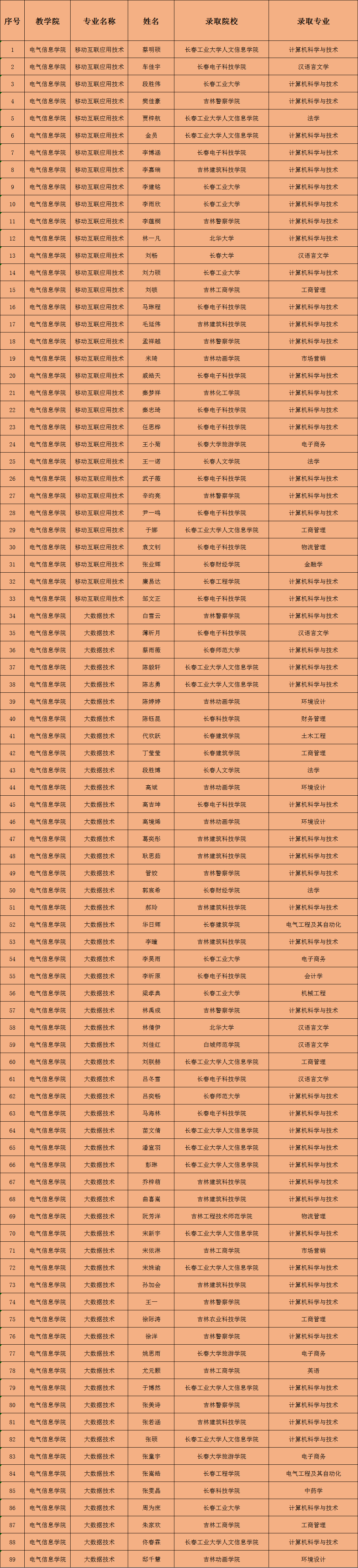 近日,2025年吉林省普通高校专升本教育考试录取结果公布,taptap点点2025届专科毕业生(大数据技术专业、移动互联应用技术专业)共有89名学生分别被长春师范大学、北华大学、长春工业大学等高校录取。