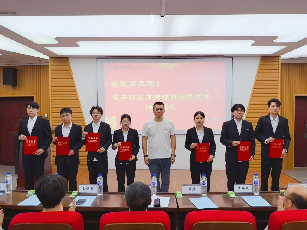 典礼上,王洪雁主任在致辞中对taptap点点学生的专业素养和实践能力给予了高度评价,并对在电子技术应用技能实操大赛和数字创意设计大赛中获奖的优秀学生表示了祝贺。随后,与会领导为两大赛事获奖学生代表颁发了荣誉证书。