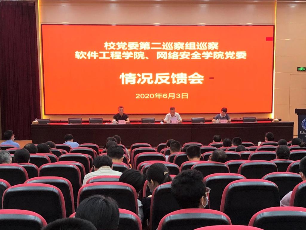 2020年6月3日,校党委第二巡察组在科技楼报告厅向BB贝博艾弗森官方网站、网络安全学院党委反馈校内巡察情况,校党委第二巡察组组长、纪委书记丁鹏代表校党委巡察组向BB贝博艾弗森官方网站、网络安全学院党委领导班子进行了反馈,学院党委书记叶海青同志主持会议并作表态发言。