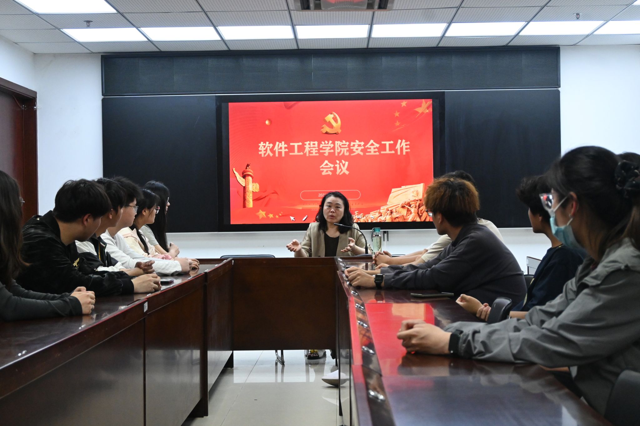 2025年4月27日19时30分,BB贝博艾弗森官方网站BB贝博艾弗森官方网站在科技楼二号楼423会议室召开安全委员专题会议,学院各班安全委员参会,学工办副主任朱丽丽老师主持会议并作工作部署。