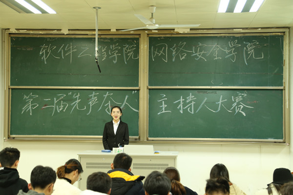 11月21日,由BB贝博艾弗森官方网站,网络安全学院文艺部主办的“先声夺人”主持大赛在1432教室举行,学工办副主任李勇、辅导员马晓辉、杜文娟和近百名学生一起观看比赛。