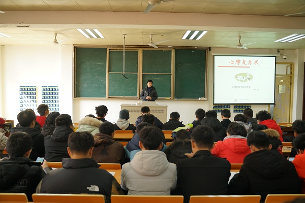 孙浩向同学们介绍了数个心跳呼吸骤停抢救的新闻事件,展示及时正确实施心肺复苏的重要性,强调必须掌握心肺复苏的适应症以及如何判断心跳呼吸骤停的技巧。“敬畏生命”需懂救护新概念,时间就是生命,救命黄金4分钟。最后向大家讲述自救互救知识以及救护步骤。