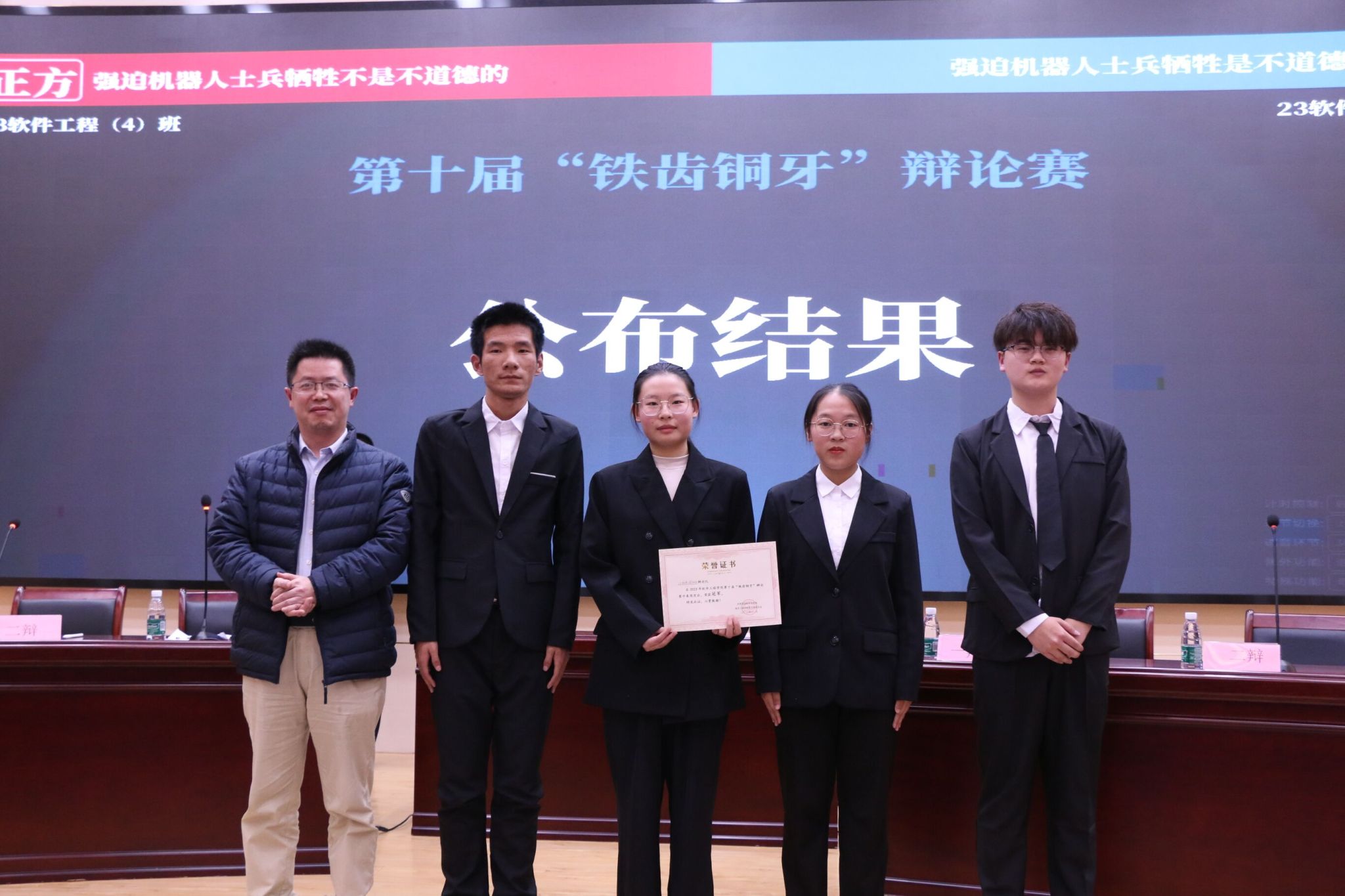 据悉,BB贝博艾弗森官方网站第十届“铁齿铜牙”辩论赛经过初赛、半决赛,历时20天,23软件工程2班和23级软件工程4班顺利挺进本次决赛。本次辩论赛决赛双方就“战争中强迫机器人牺牲是否道德”辩题展开了精彩的辩论。开篇立意环节,正反双方进行了充满理性的自我论述,正反双方各执一词,陈述时条理清晰。辩论环节,辩手们坚定的立场、清晰的观点、精湛的论技赢得了观众们不断掌声和喝彩。辩论赛尾声,校辩论队队长巩龙浩分别就辩论双方的观点、立意、技巧表现进行点评,提出了很多有益的建议。经过激烈的角逐,23级软件工程4班脱颖而出,获得冠军,23级软件工程2班陈慧萍同学获得最佳辩手奖。