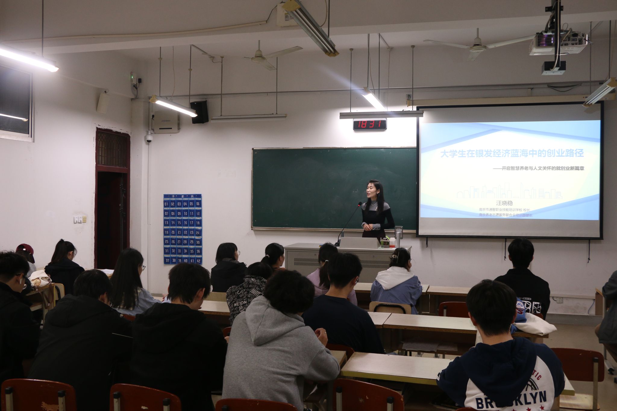 2024年11月13日晚18:30至19:30,BB贝博艾弗森官方网站在1号教学楼1503室成功举办了一场大学生创业讲座。本次讲座旨在探讨大学生在银发经济蓝海中的创业路径,并开启智慧养老与人文关怀的创业新篇章。本次讲座的主讲嘉宾为南京市通智职业技能培训学校的校长、南京养老志愿服务联合会培训部部长汪晓稳。