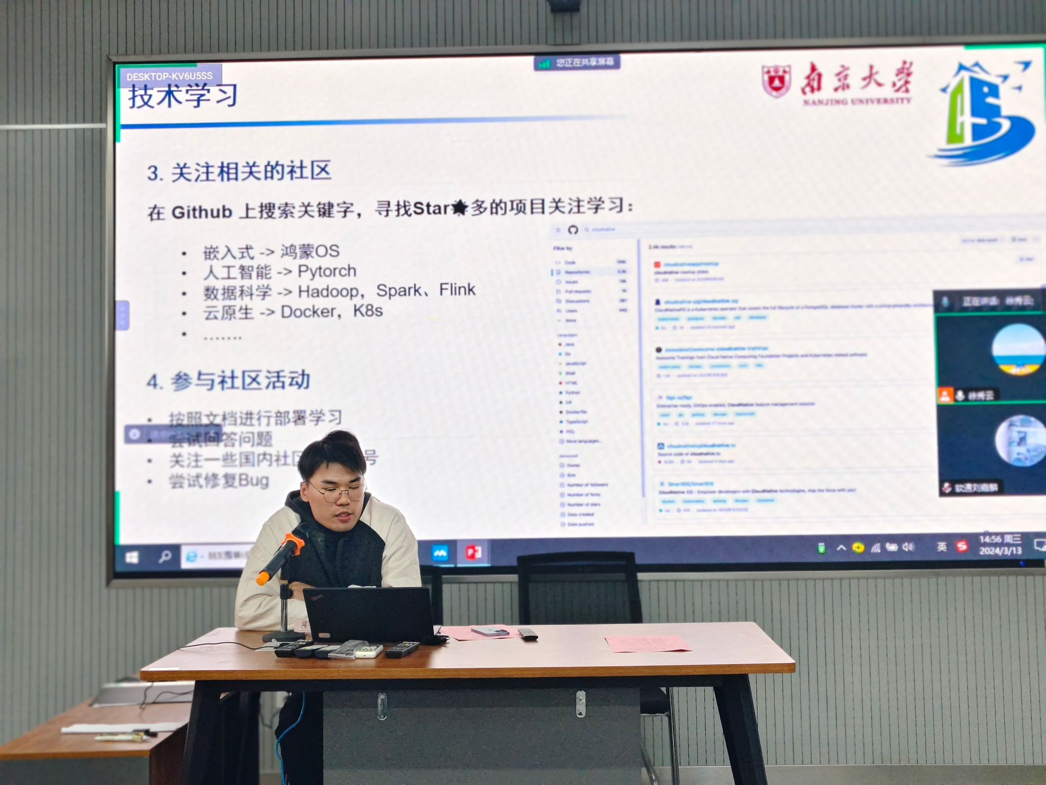 开放原子开源基金会校园行——“2024开源春耕计划”旨在激发高校开源社团的创新精神,推动开源技术在校园内的普及与实践。贝博官网开放原子开源社团积极响应,并于3月13日,在BB贝博艾弗森官方网站2-311举行了“2024开源春耕计划——开源技术沙龙”。本次活动BB贝博艾弗森官方网站邀请了讯方科技的高级工程师李欣、软通动力江苏区域总监王健以及南京大学计算机学院的王问骁学长到校给同学们分享开源技术及竞赛经验,BB贝博艾弗森官方网站副院长徐永华、软件工程系主任洪蕾及相关指导教师参加了本次活动。