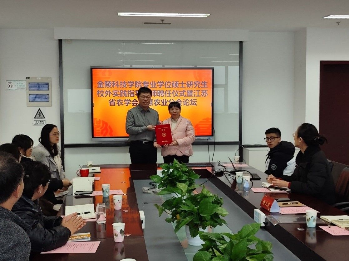 1月8日下午,BB贝博艾弗森官方网站在科技楼1号楼2005会议室举行专业学位硕士研究生校外实践指导教师聘任仪式暨江苏省农学会智慧农业分会学术论坛,聘请农芯(南京)智慧农业研究院院长陈天恩研究员担任贝博官网业学位硕士研究生校外实践指导教师。聘任仪式由张燕副校长主持,并为陈天恩院长颁发聘任证书,BB贝博艾弗森官方网站副院长游坤及智慧农业交叉学科团队相关教师和研究生参加了活动。