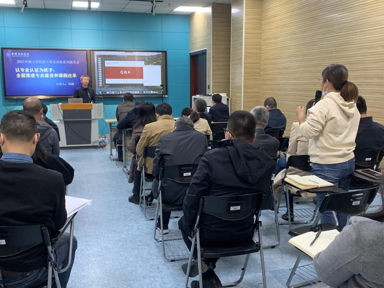 本次新工科联盟专家进高校BB贝博艾弗森官方网站站报告会线上线下共有来自BB贝博艾弗森官方网站、北京化工大学、南京航空航天大学、辽宁石油化工大学、苏州大学、深圳大学、温州大学、淮北师范大学、北京城市学院、南阳理工学院、重庆财经学院、集宁师范学院、平顶山学院、武昌理工学院、浙江经济职业技术学院等高校以及北京奇观技术有限责任公司、重庆安尼森智能科技有限公司等企业界共计近百位代表参会,在孙涵教授的主题报告之后,还进行了气氛热烈的现场交流,参会者积极提问,孙涵教授一一作答,报告会让参会者从毕业要求指标点的分解、课程目标的设计与达成、毕业要求的内涵与课程支撑等方面都深受启发、获益匪浅。