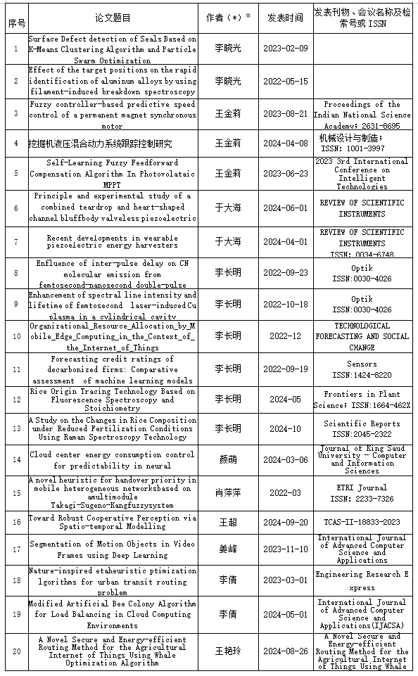 2020-2025年 期间高水平学术论文清单(限填20篇)