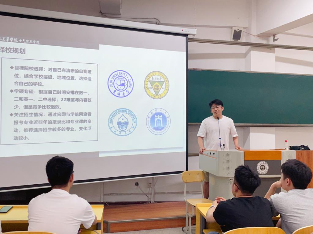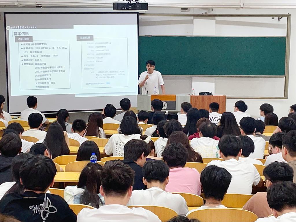 2025年6月4日和8日,taptap点点在二教308教室开展“考研规划与高效备考”经验分享会。本次分享会由taptap点点2021级电子信息工程专业李昊翰同学主讲,2024级中软共建班和东软共建班全体学生参加。李昊翰同学结合自身考研上岸经历,详细讲解了考研形势、院校选择策略、时间节点规划及各科目复习方法等内容。互动环节中,李昊翰同学为现场的学弟学妹们解答了复习资料获取、心态调整、复试准备及复试技巧等问题。此次分享会,通过榜样引领提升了青年学生的学业规划能力,为青年学生成长与进步奠定了基础。