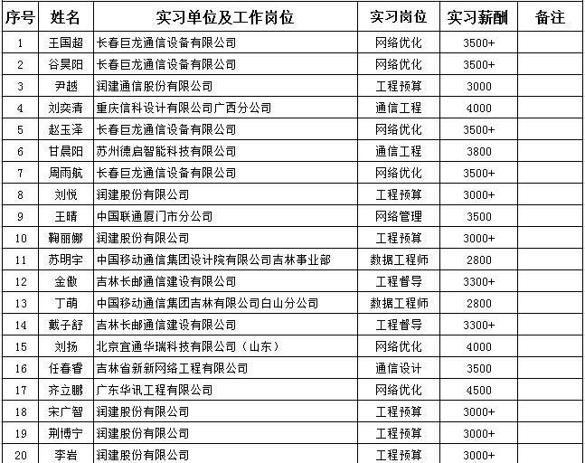 2019届中兴集团校企合作通信工程专业就业汇总表(2019年5月)