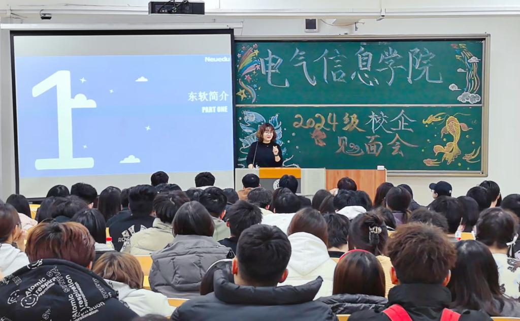 会上,杨雪老师首先代表东软教育对2024级新同学们的到来表示热烈欢迎,并向新同学们介绍了东软教育科技集团的创建历程、核心业务布局,并着重阐述了企业文化精髓、校企合作优势、人才培养模式、企业用人需求和行业发展前景等相关方面的内容。