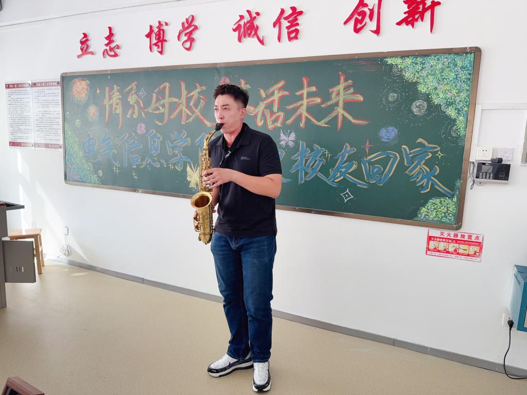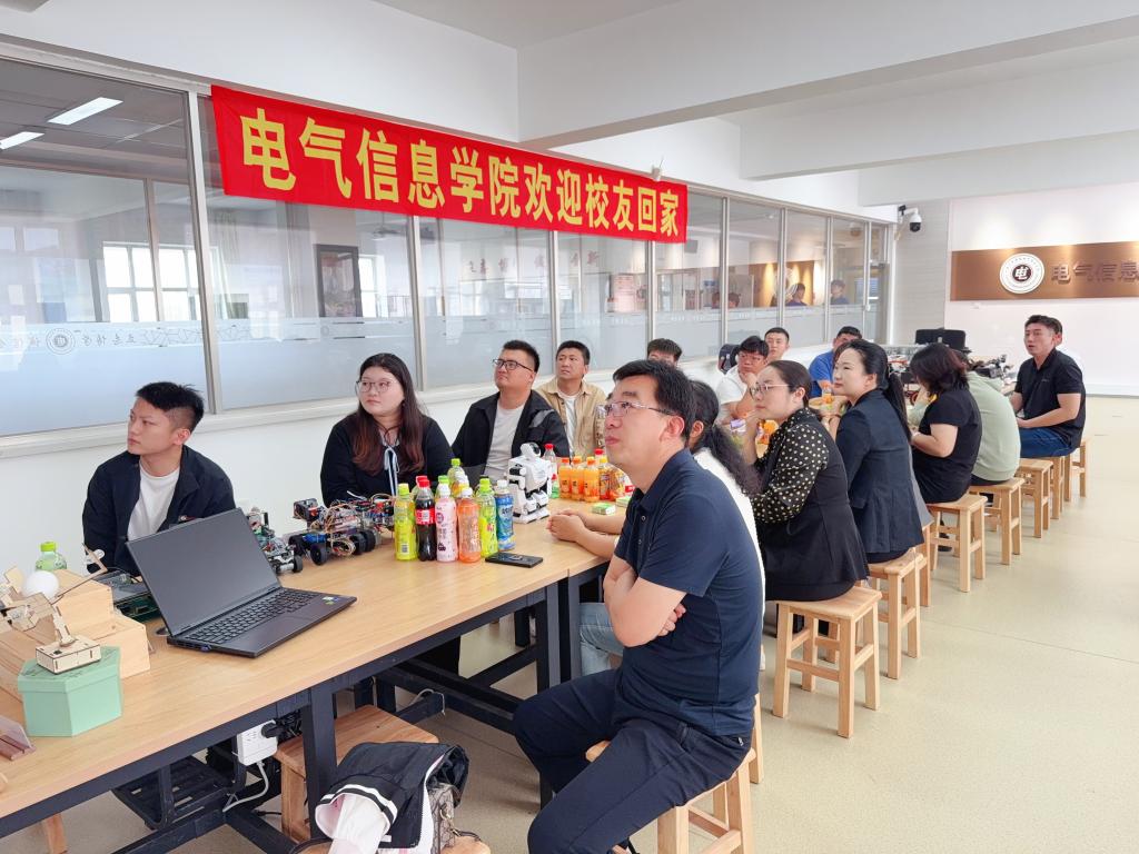 “情系母校,共话未来”校友茶话会在实验楼403室温馨举行。taptap点点党总支副书记李艳、系主任、教师代表、辅导员与返校校友们欢聚一堂,共同观看学院宣传片。学生代表现场讲解科技作品,展现创新实力。辅导员关浩月萨克斯独奏《回家》深情悠扬,将现场气氛推向高潮。师生与校友畅谈学校和学院发展成就,回忆往日校园趣事,现场欢声不断、情意融融。