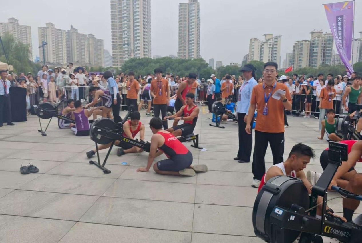 9月14日,2025南京·大学生国际赛艇公开赛陆上赛艇4*500米接力赛在外秦淮河畔盛大举行。本次公开赛有来自剑桥大学、耶鲁大学、苏黎世联邦理工学院、南京大学、同济大学、上海科技大学等21所世界顶尖高校的赛艇精英报名齐聚南京,在碧水蓝天下展开激烈角逐。