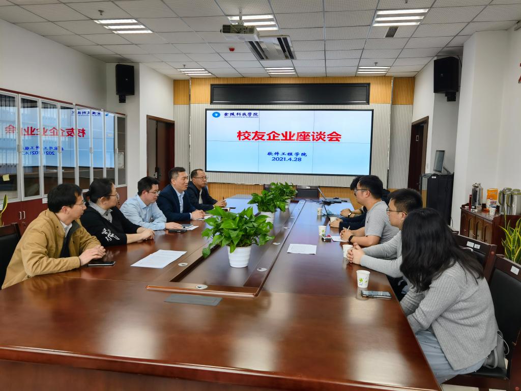 参观之后,软件学院徐志国书记、曾岳院长、徐斌副书记、系主任洪蕾和李亚志老师在科技楼2—325会议室与崔总和任总进行了热情的座谈交流。校友们感谢学院的培养,对学院近几年取得的成绩表示祝贺,希望母校培养更多的优秀学生,企业愿意每年优先提供岗位给母校的毕业生。双方还就学科建设、专业建设、人才培养、校企合作、大学生创新创业等方面的深度合作进行了交流,校友企业现场填写了学院人才培养企业调研表,对学院的人才培养提出许多建设性意见。学院将进一步加强与校友企业的联系与合作,培养更多符合企业需求的新型应用型人才。