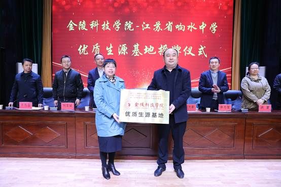 张燕副校长和三所学校领导进行了友好交流,相互介绍了各自学校发展建设情况,闵琛处长向三所学校领导介绍了贝博官网招生情况、就业情况和在校大学生创新创业情况。张燕副校长代表学校与江苏省响水中学党委书记校长张大春 、江苏省上冈高级中学党委书记校长谈万余在“BB贝博艾弗森官方网站优质生源基地合作协议书”上签字,并举行了优质生源基地授牌仪式。