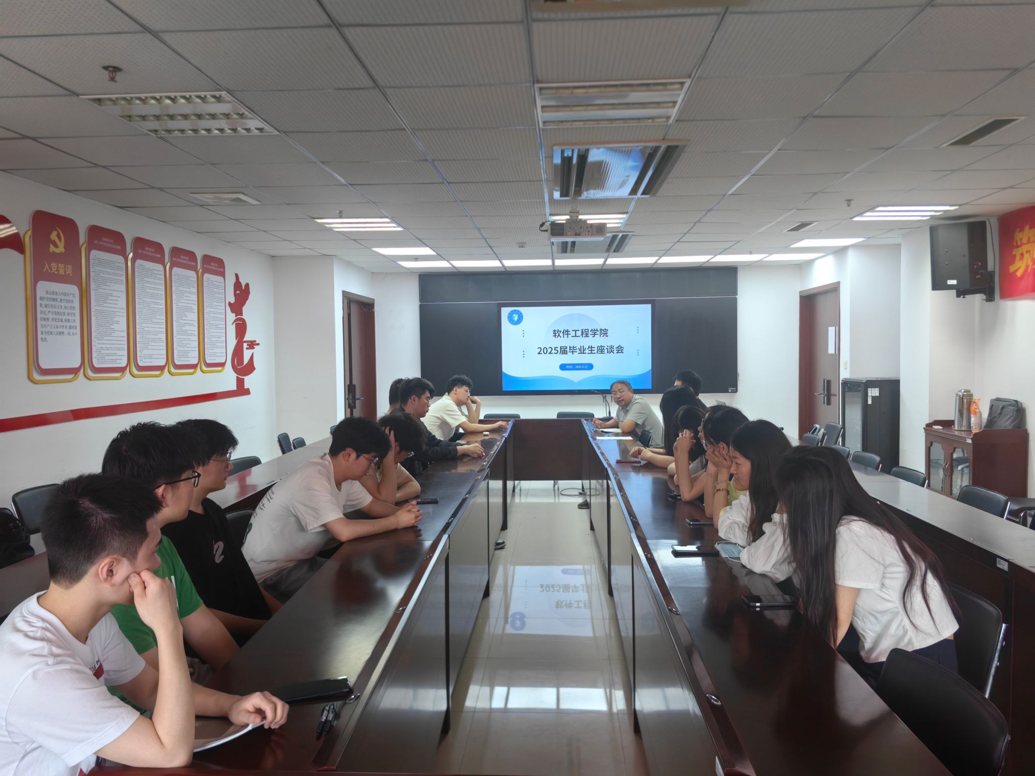 为更好地收集应届毕业生对学院学风建设和教学服务等方面的建议,深入了解学院人才培养目标和毕业要求的达成情况,5月15日上午10点,学院在科技楼2号楼423会议室组织召开了2025届毕业生代表座谈会。软件工程(基础软件)系副主任朱皖宁老师以及各班毕业生代表参加了本次会议。