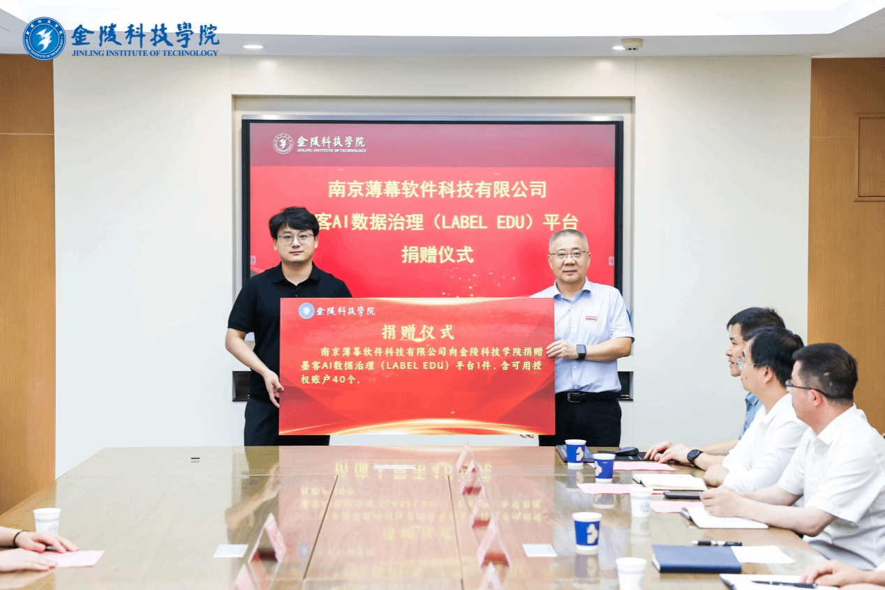 6月21日,BB贝博艾弗森官方网站在行政楼240会议室举行了校友企业南京薄幕软件科技有限公司向母校捐赠“墨客AI数据治理(LABEL EDU)平台”仪式。校党委书记刘志远,党委常委、副校长高永祥出席了捐赠活动,南京薄幕软件科技有限公司总经理任远东(2015级校友)、执行技术总监李海洋(2015级校友)、校友办负责人、软件学院领导班子成员和师生代表参加了活动。